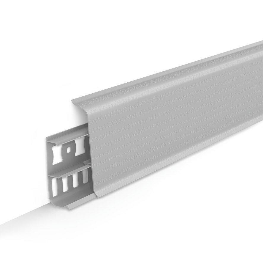 Плинтус ПВХ Ideal Деконика 70 мм Светло-серый 002 – это не только функциональный элемент декора, но и практичный способ скрыть небольшие дефекты стен. Он легко устанавливается и не требует специального ухода.